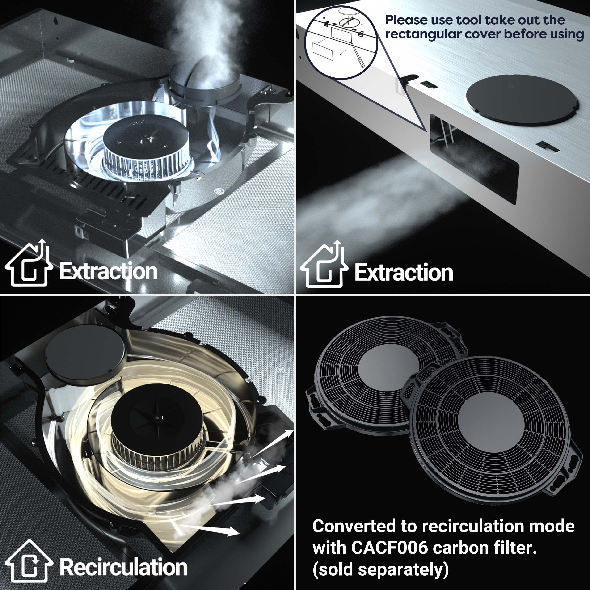 شفاط مدخنة قابل للتحويل أسفل الخزانة مقاس 30 بوصة، 200 قدم مكعب في الدقيقة، مصنوع من الفولاذ المقاوم للصدأ