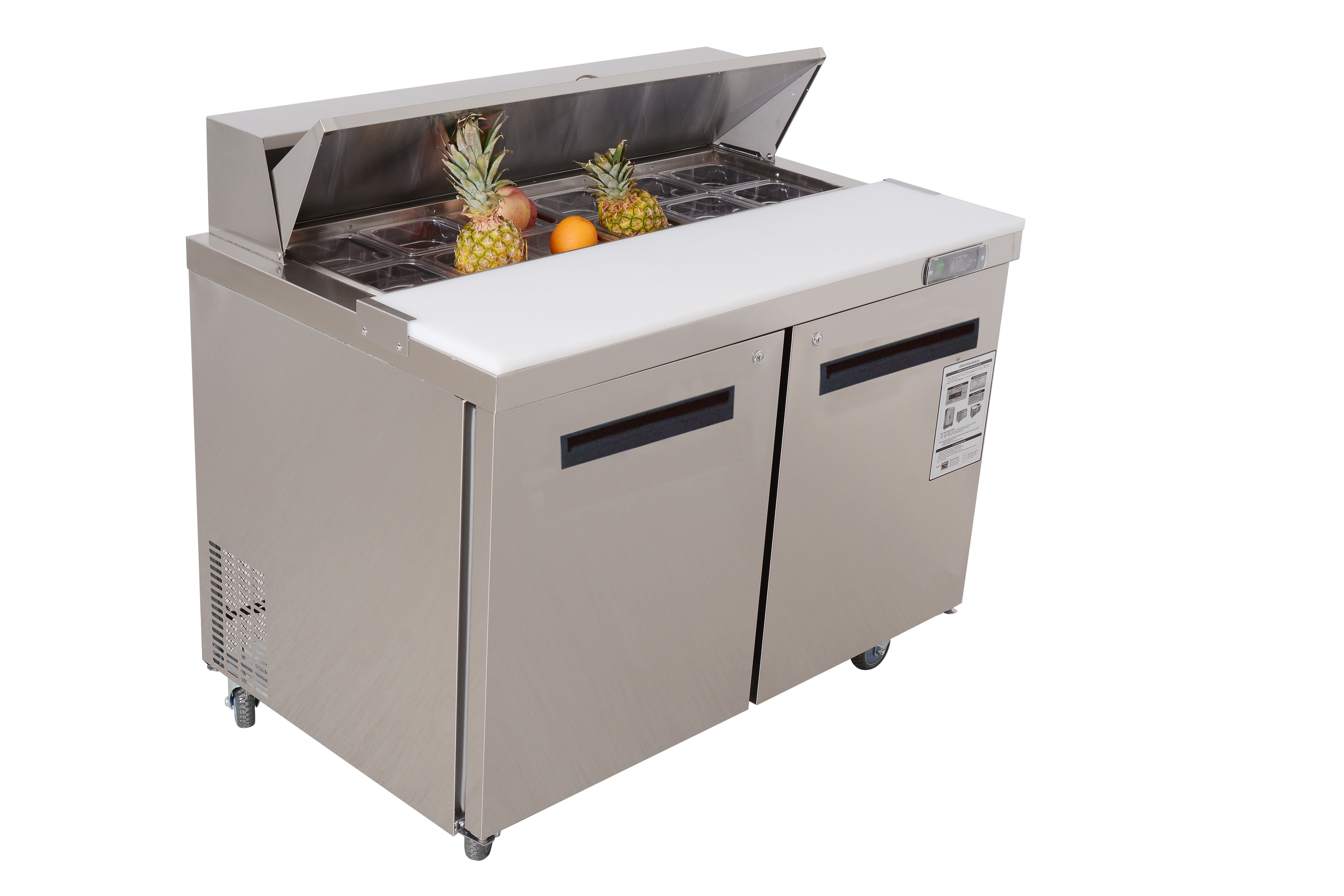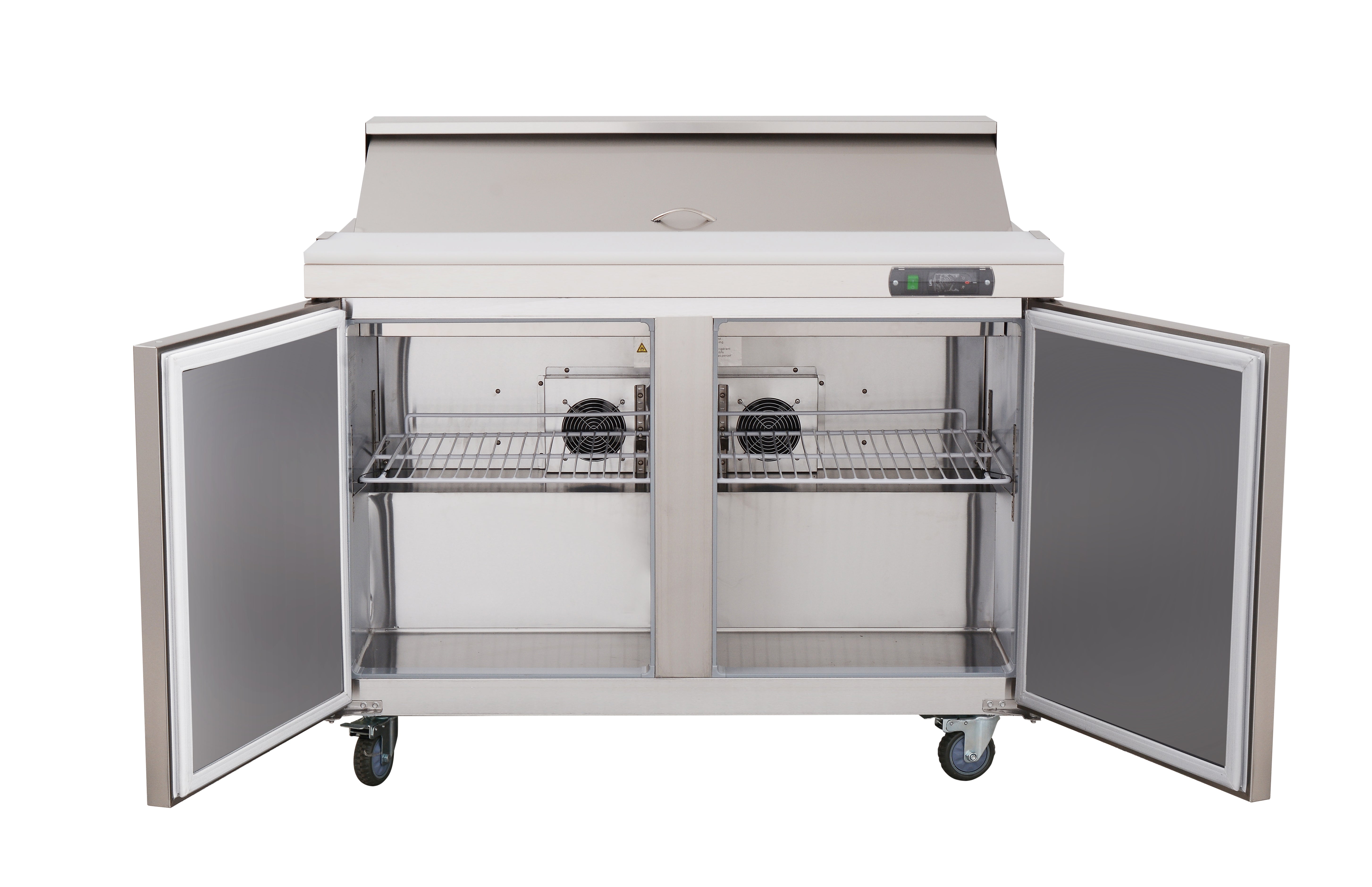 حافظ على مكوناتك مبردة وجاهزة للسلطات والأطعمة الأخرى. يسمح الجزء العلوي الكبير بمساحة أكبر وهو معزول بغطاء علوي شديد التحمل. تتمتع محطات تحضير الطعام هذه بالسعة المثالية للاحتفاظ بمكوناتك أمامك دون عناء وتخزين مكونات إضافية لتحضير الوجبات في قاعدة الخزانة المبردة أدناه. تتضمن حاويات مقلاة 1/6 للحفاظ على التنظيم. بابان مفتوحان لتوفير مساحة للحفاظ على الأطعمة الكبيرة باردة. يعني الجزء الداخلي والباب المعزولان بالكامل أن درجات الحرارة تظل ثابتة طوال اليوم.
