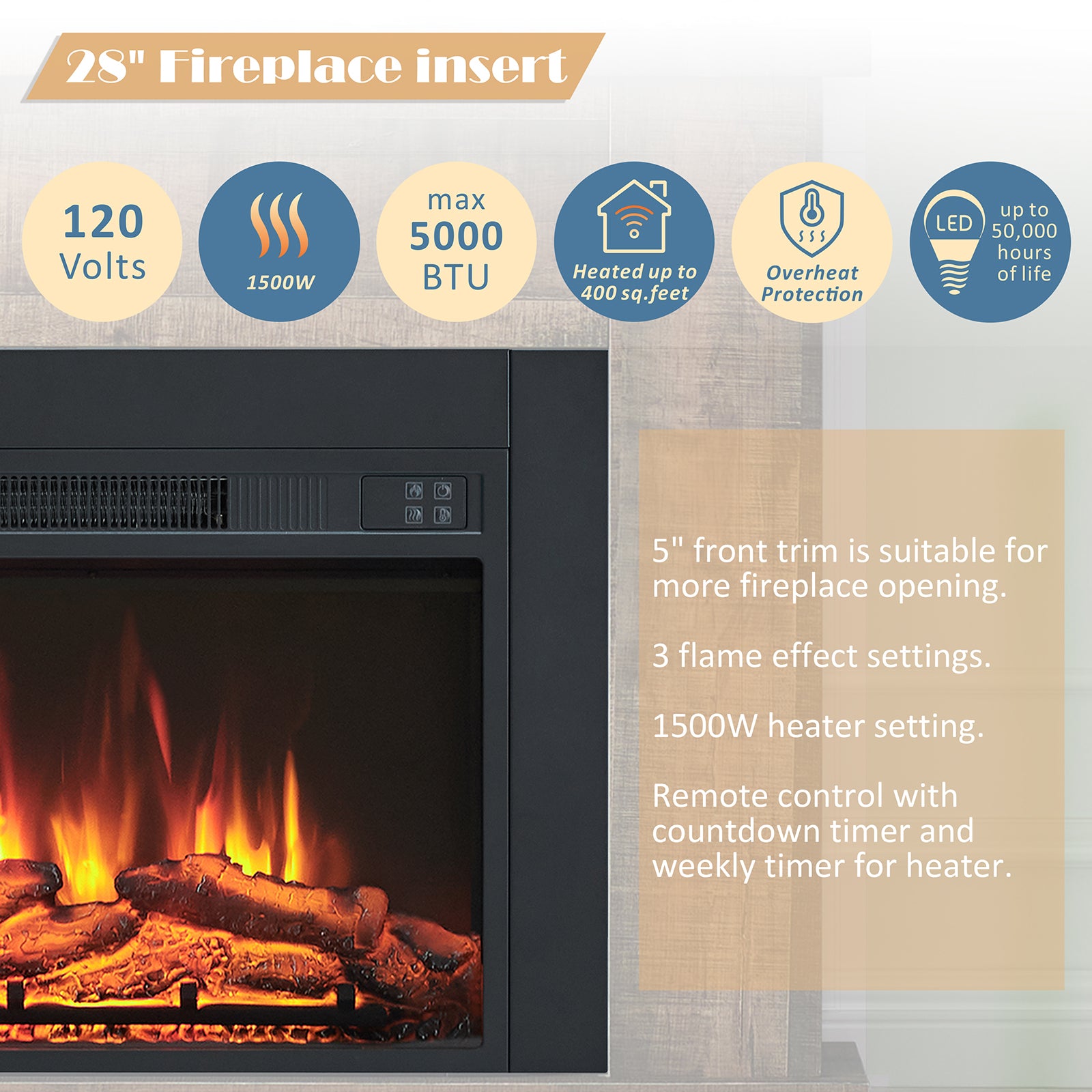Electric fireplace insert uses LED flames effect technology to create a Christmas chalet-like cozy atmosphere. What's more, the color, brightness ans speed of the flame can be adjusted by you through the remote control or control panel. 750W-1500W is suitable for different rooms and weather. If you are looking for an electric fireplace to get warmth and a lovely atmosphere without safety issues, this electric fireplace heater would be your perfect choice.