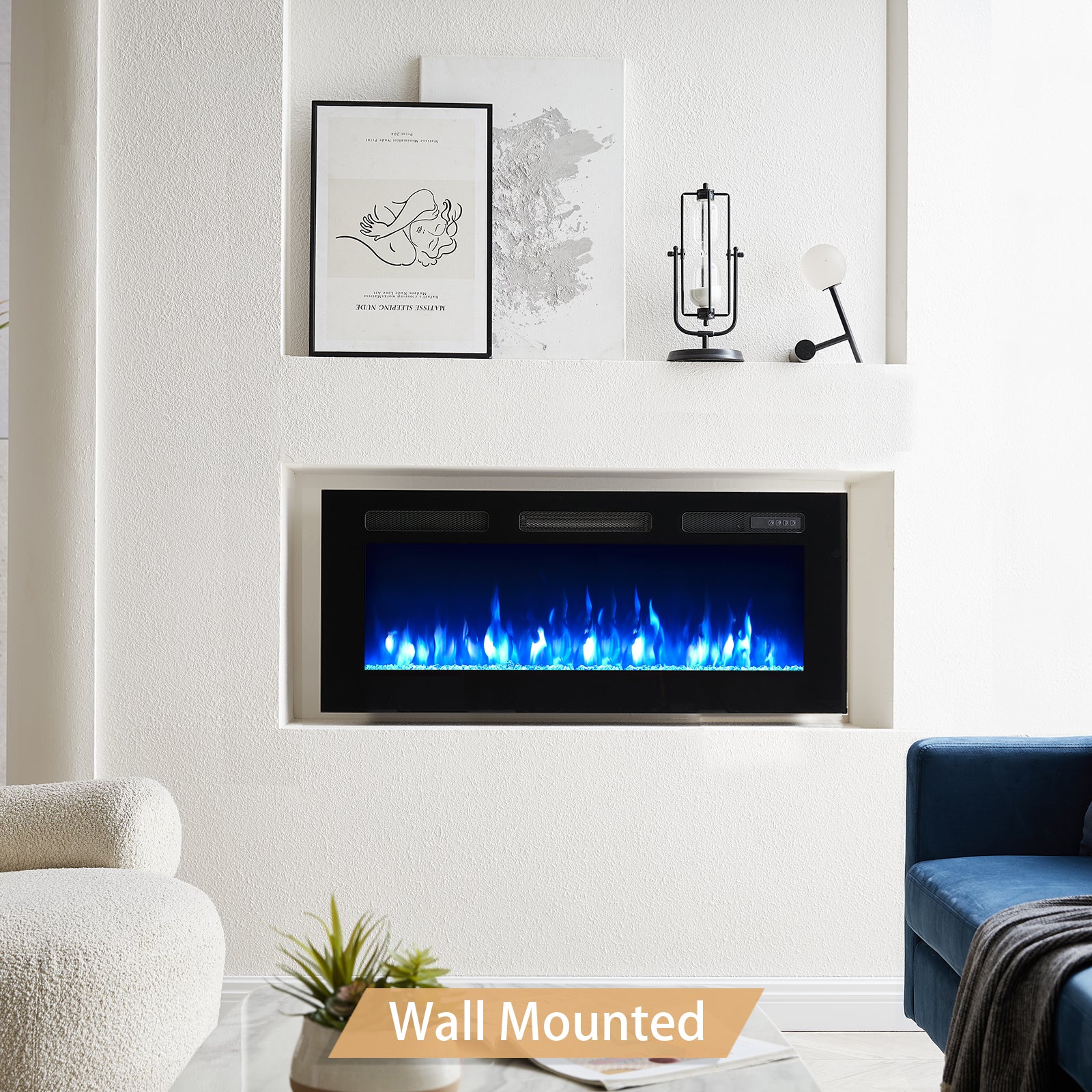 Realistic Flame Effects: Full spectrum LED colors for a unique ember bed display 9 flame colors and 5 flame brightness options; It comes with crystal and carbon log rocks to meet your requirement; Ultra High Intensity Led lights with large display allows the flame to show burn high enough, flames emerge slowly from the source and then get pulled to the top of the fireplace where they flash in the heat of the top of the fireplace.