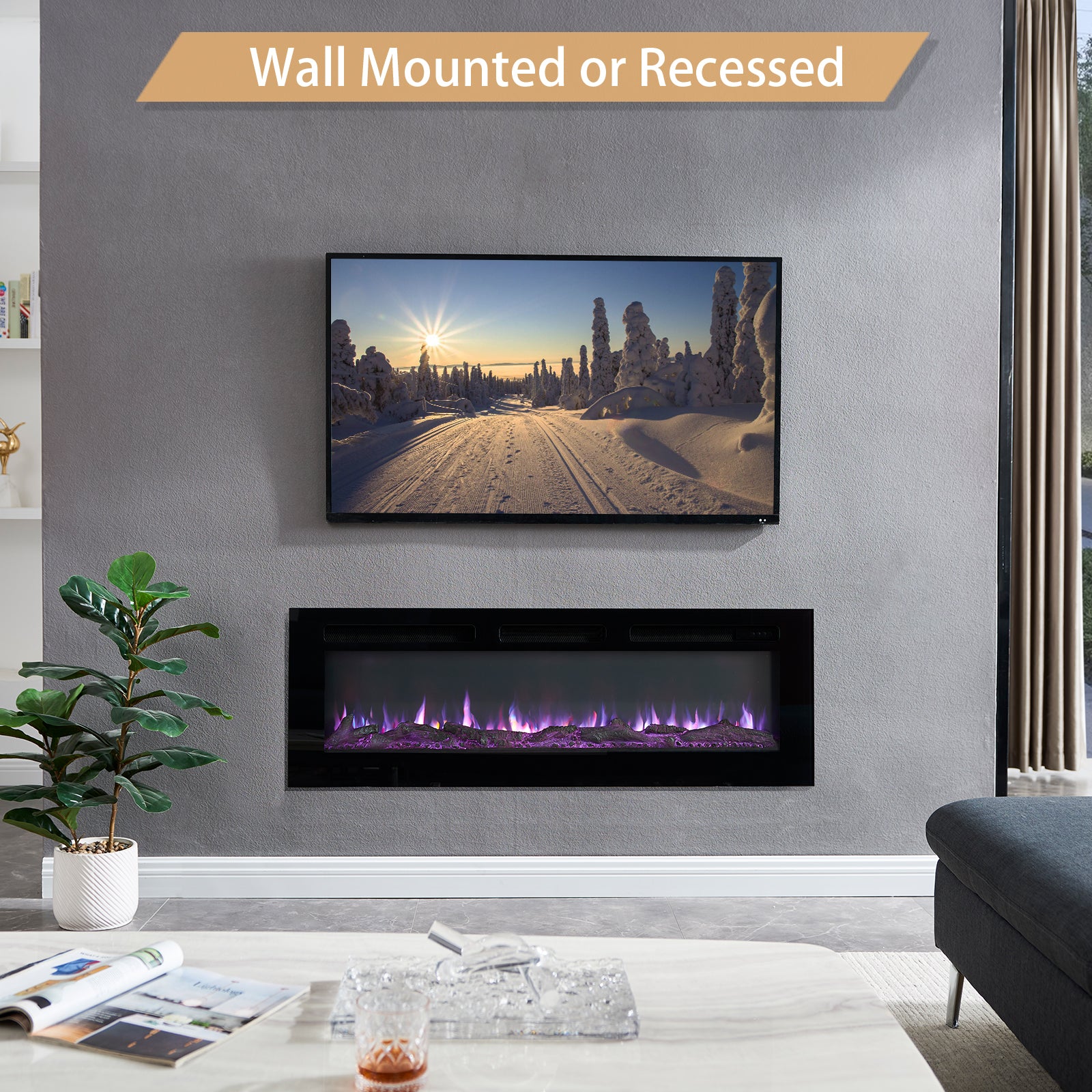 50-in W Black Fan-forced Wall-mount Electric Fireplace