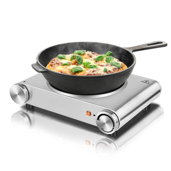 Portable electric burner with thermostatically controlled heating settings, advanced infrared thermal cycling and thermal protection make it easy to cook a variety of foods such as warm sauces, scrambled eggs, grilled steak, soup, pasta, veggies and so much in addition, you can use it as an extra burner to keep the food warm.