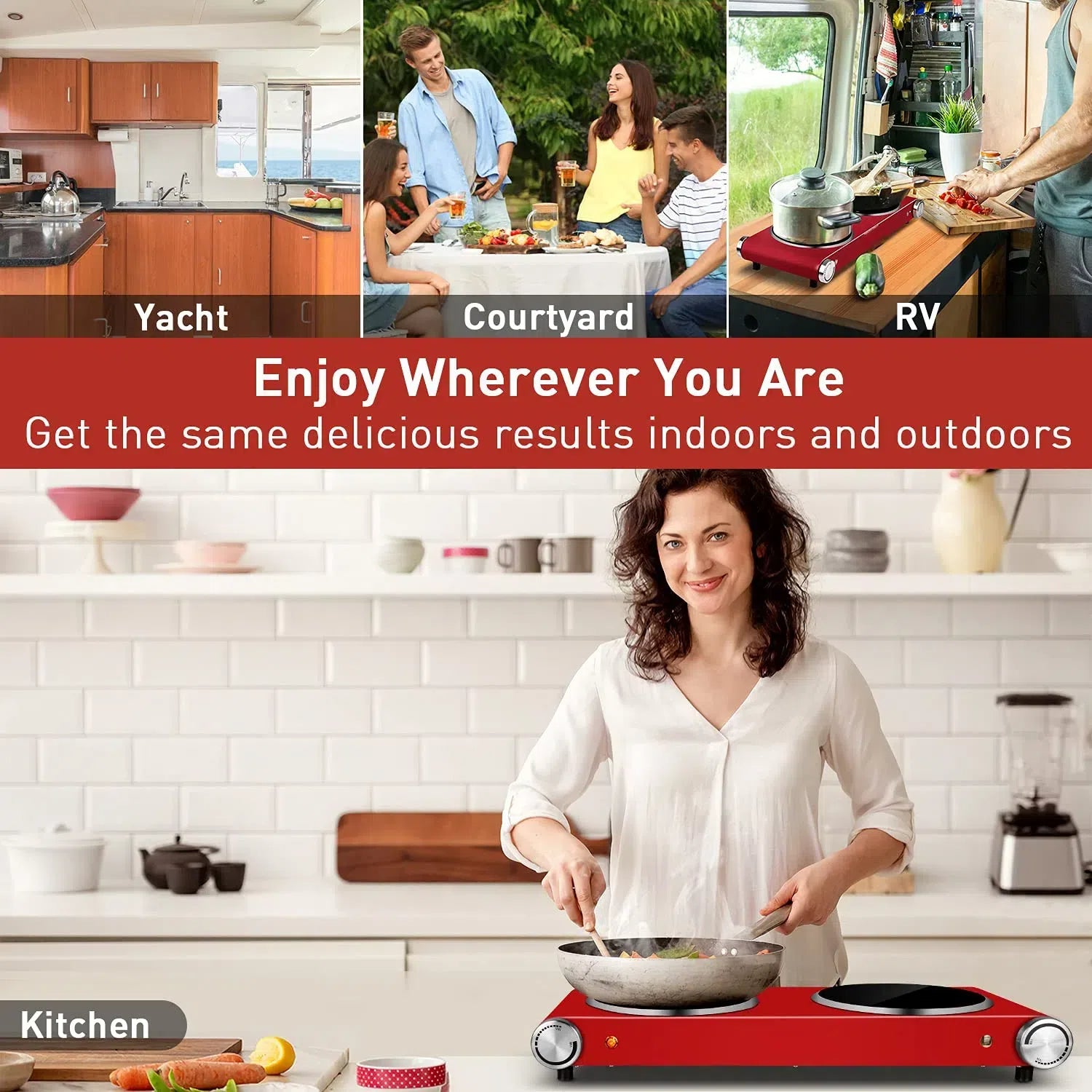 Hot plate is perfect for all kitchens for its easy control, never goes out of style stainless steel surface and dual crystallite glass design especially ideal for dorms, offices, camping, rv/caravans, holiday homes, daily use or entertaining, or as an extra cooking appliance in the busy kitchen for its compact size.