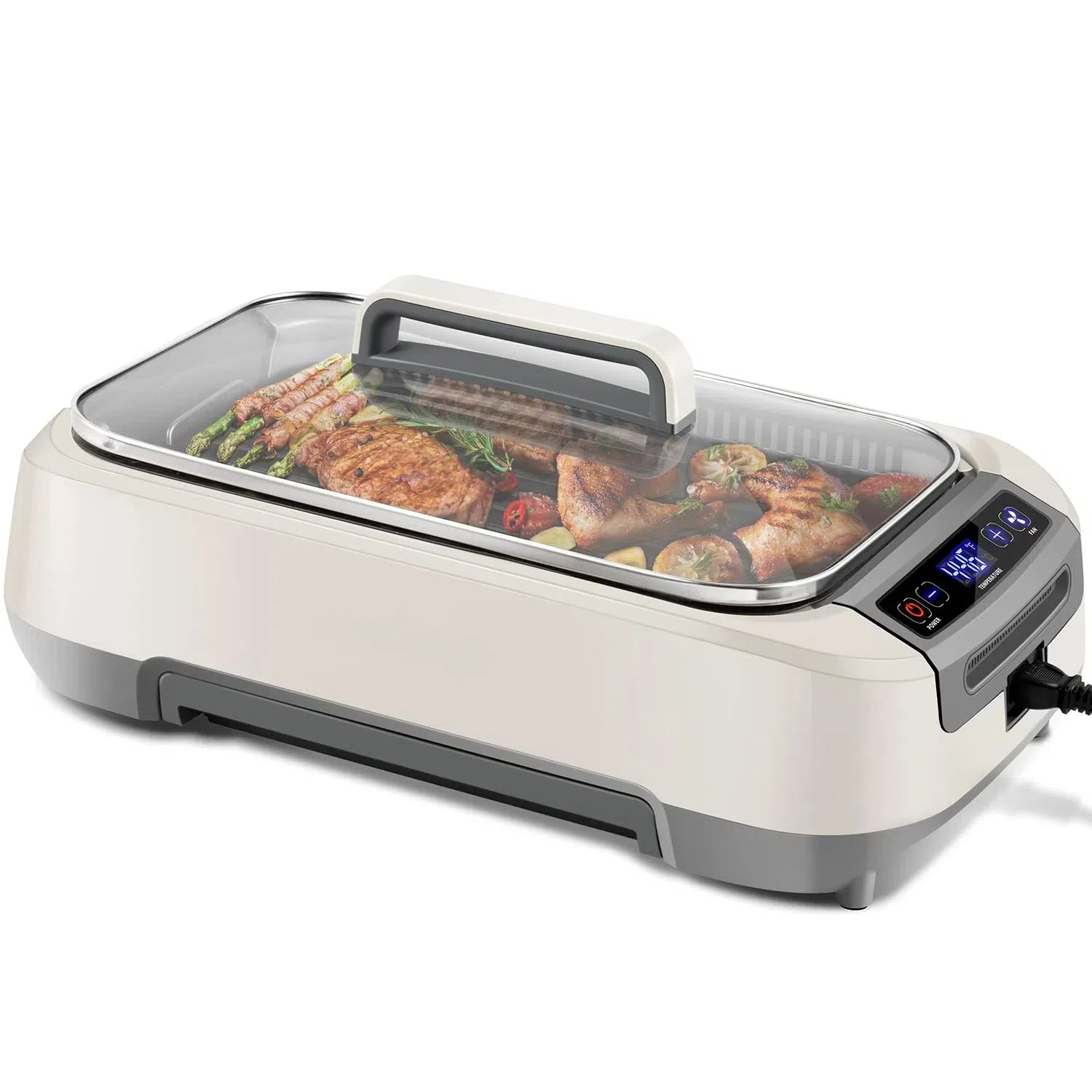 Experience the joy of indoor grilling without the hassle and mess of smoke. Adjust the temperature to your liking to get your food to perfect doneness. Upgrade your cooking experience with our 1500-Watt Korean Smokeless Grill, featuring an LED smart display and tempered glass lid, allowing you to easily see the status of your food and enjoy authentic taste in the comfort of your home.