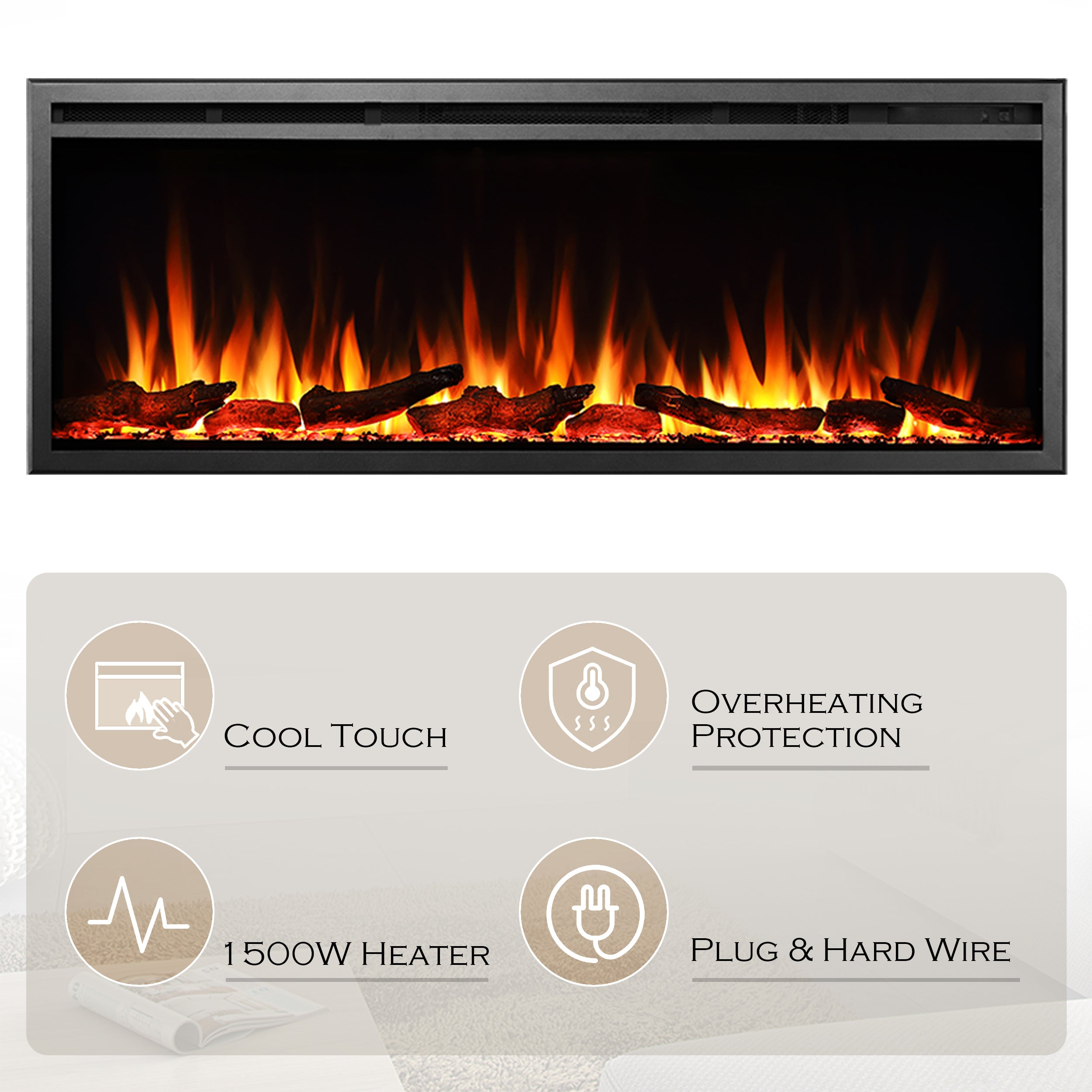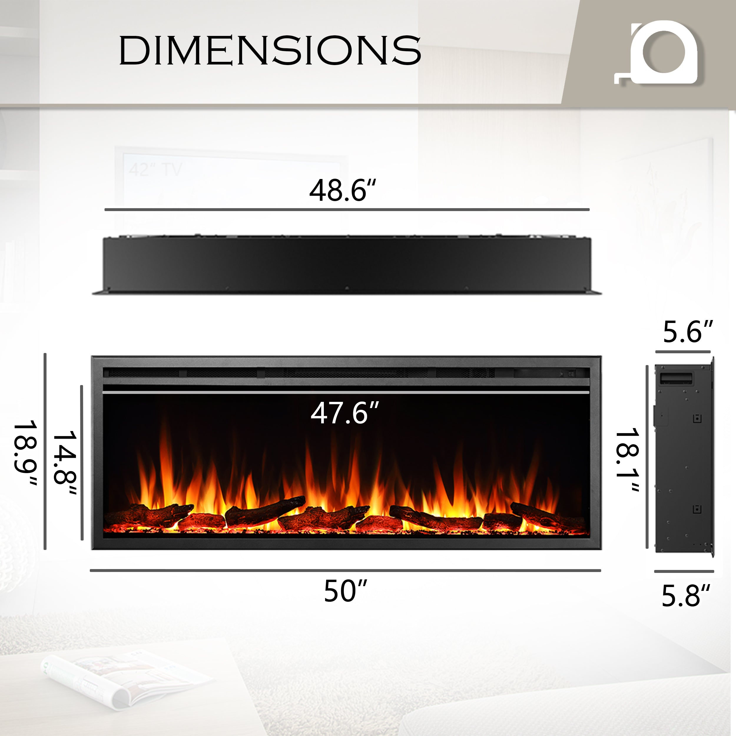 50-in W Black Fan-forced Wall-mount Electric Fireplace