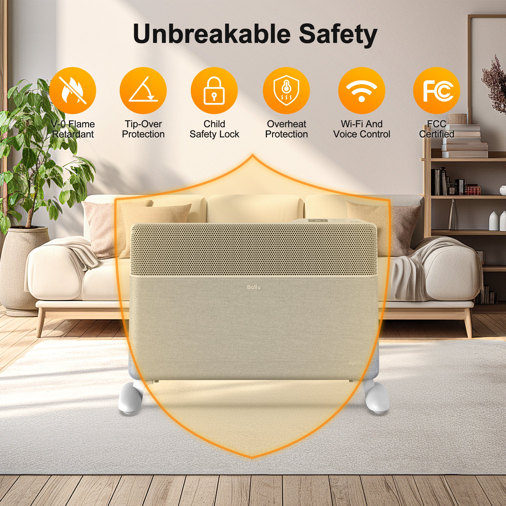 Rapid Warm Up: Indulge in the cozy comfort of warmth within 55 seconds of turning on; Efficiently elevate the temperature of your entire room in as little as 1-2 hours, depending on your room size and initial temperature.