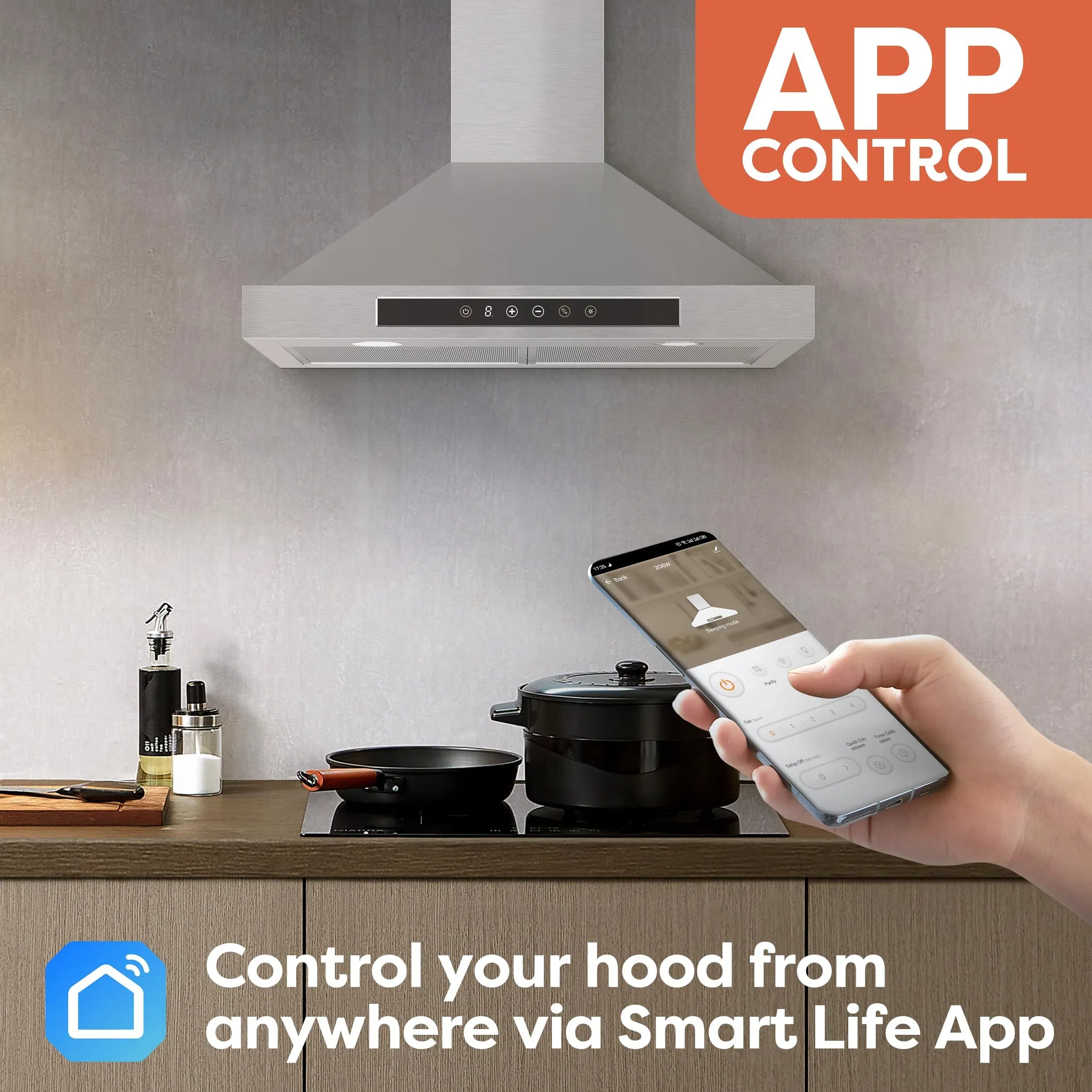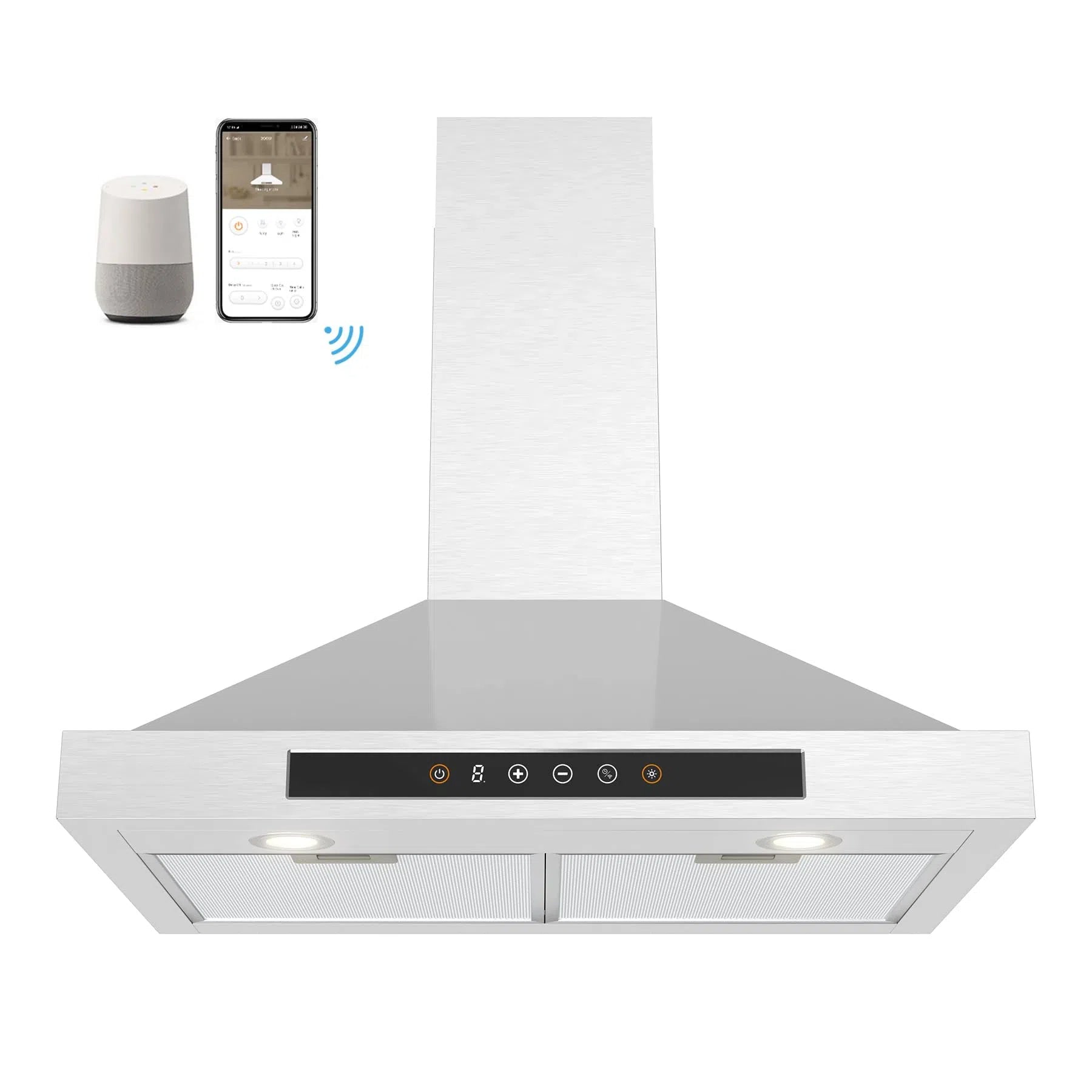 Smart range hood connects2-level LED lighting3 speed fan to choose